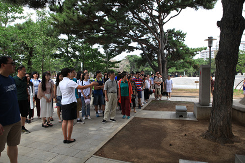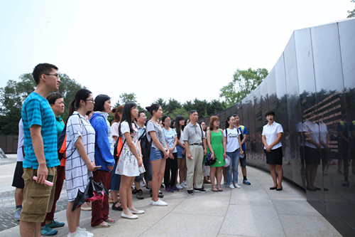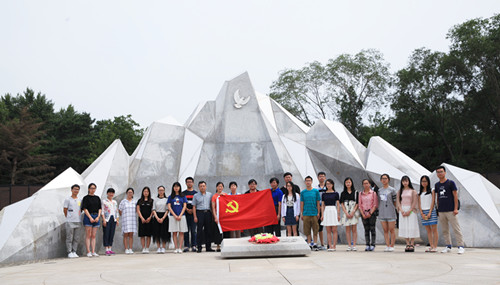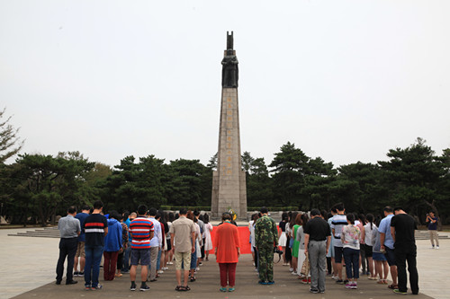 2016年7月15日,探花视频 思想政治理论课论文竞赛获奖学生“红色之旅”暑期社会实践团一行70余人来到沈阳抗美援朝烈士陵园,凭吊先烈,寄托哀思。