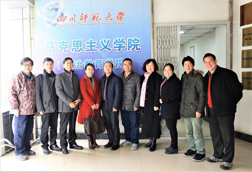 2016年11月8日至10日,探花视频 思想道德修养与法律基础教研室主任胡祎赟副教授带领教研室赵春华、周红锵、李瑞平、陈慧麒、盛瑾等老师赴四川师范大学、西南交通大学进行为期两天的调研交流。与两校探花视频 领导、教研室主任、骨干教师进行了座谈交流。此次调研交流涉及思想政治理论课课堂教学与实践教学改革经验、马克思主义学科建设经验、科学研究经验、服务社会经验等方面的内容。