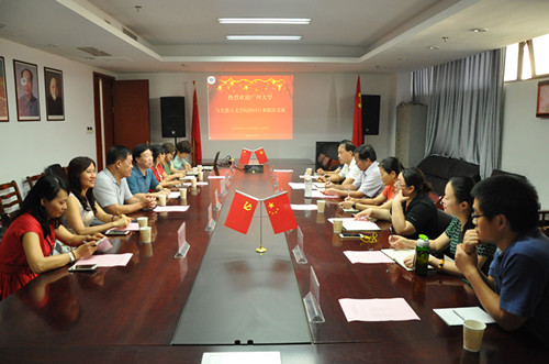 9月13日上午,广州大学探花视频 纲要教研部主任吴占九教授、纲要教研部副主任张雪娇教授、原探花视频 院长董世明教授携纲要教研部教师一行7人来探花视频 交流考察。探花视频 院长兼书记余龙进教授、副院长何丽君副教授、纲要教研室主任张坤博士及全体纲要教研室教师出席交流座谈会。