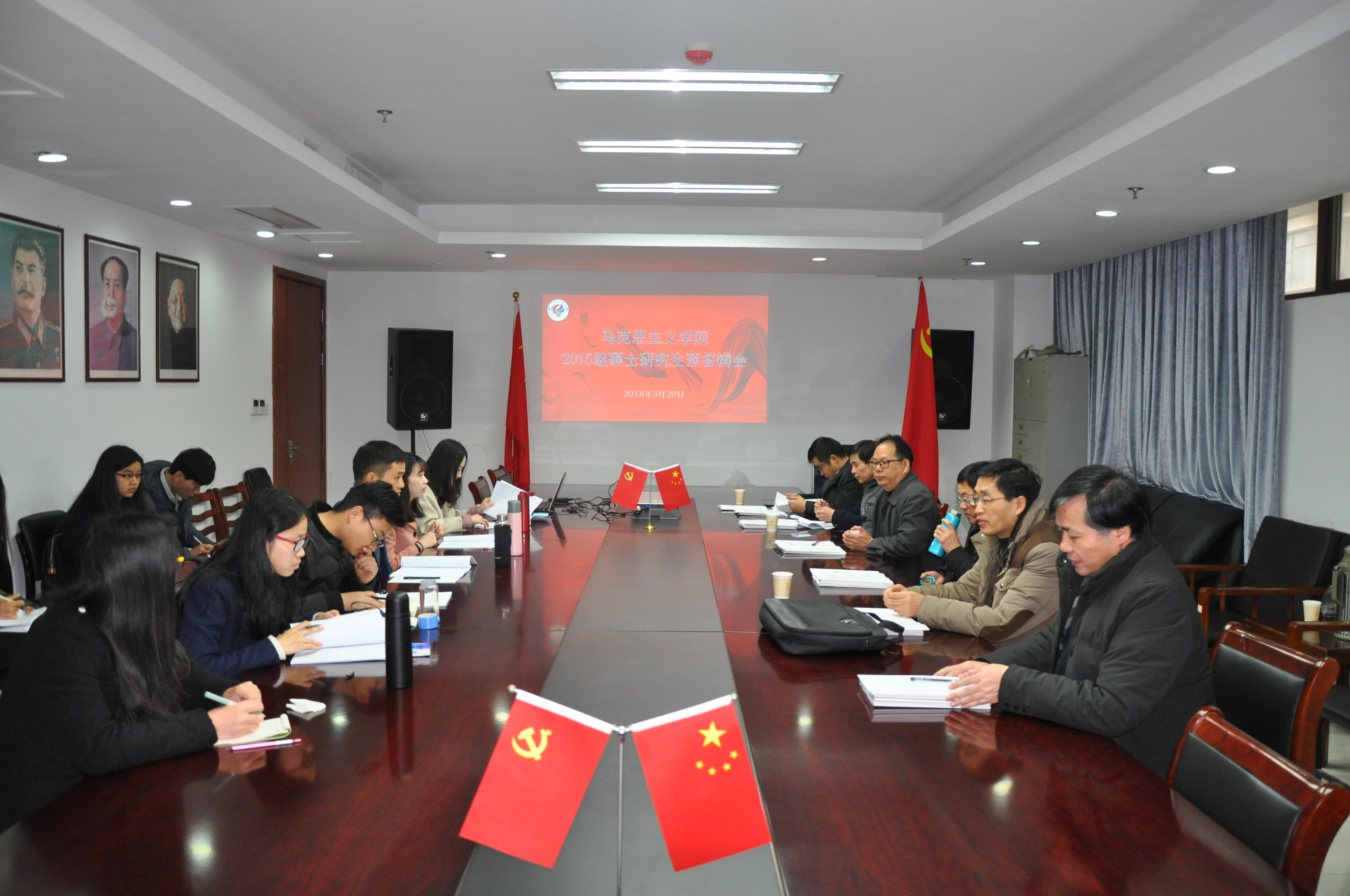 3月20日上午,探花视频 贯彻研究生培养质量工程要求,遵照研究生院培养细则,召开了2015级研究生毕业论文预答辩会。探花视频 院长余龙进教授主持,浙江工商大学探花视频 院长陈华兴教授、探花视频 政治与社会学院潘国旗教授及探花视频 傅德田老师、种海峰老师、胡祎赟老师担任评审专家,研一、研二学生与会学习。