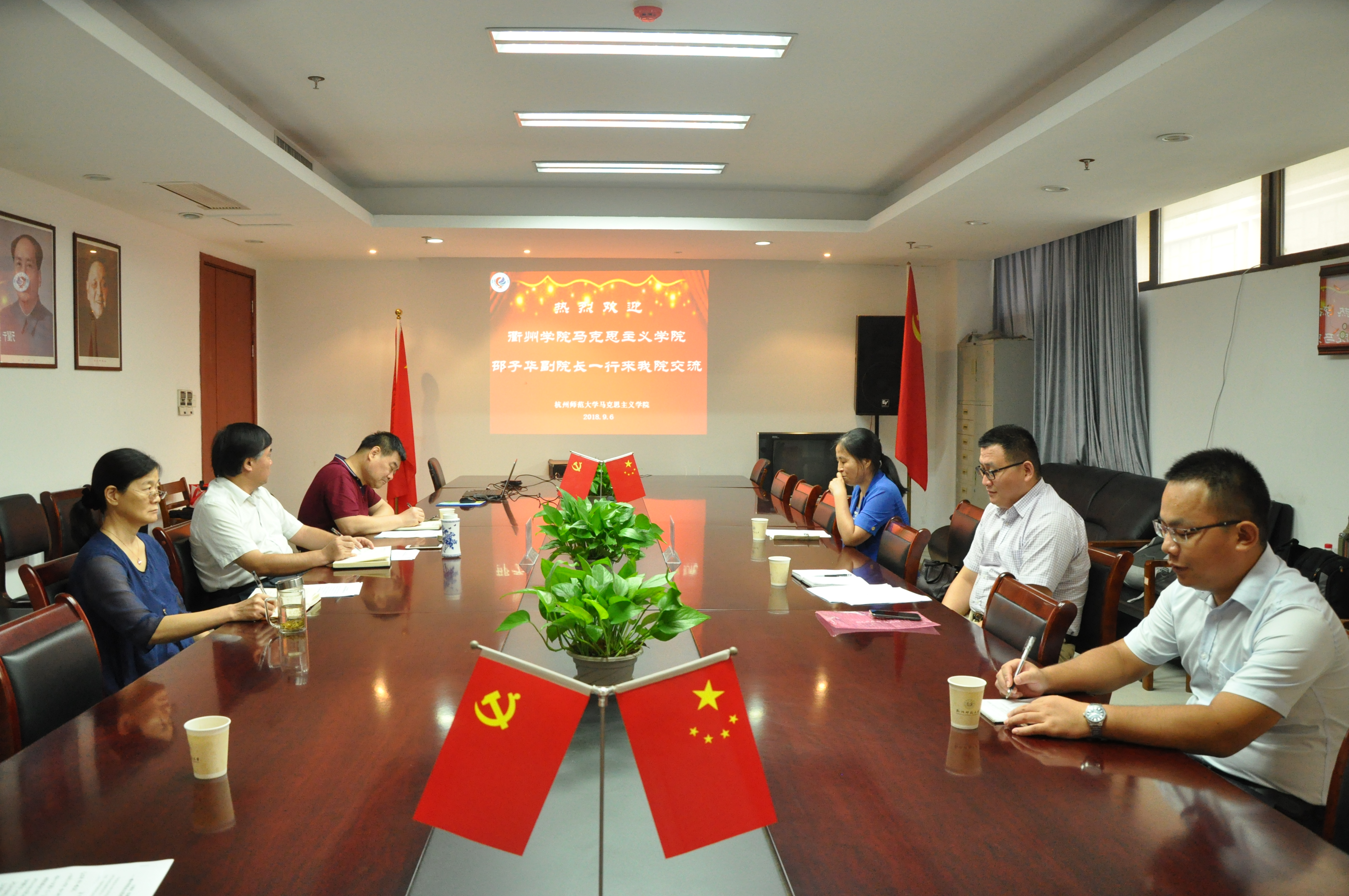 2018年9月6日下午,衢州学院探花视频 副院长邵子华一行3人来探花视频 交流考察。学院党总支书记、院长余龙进,副院长何丽君以及思想道德修养与法律基础教研室教师李瑞平等参加了交流会。