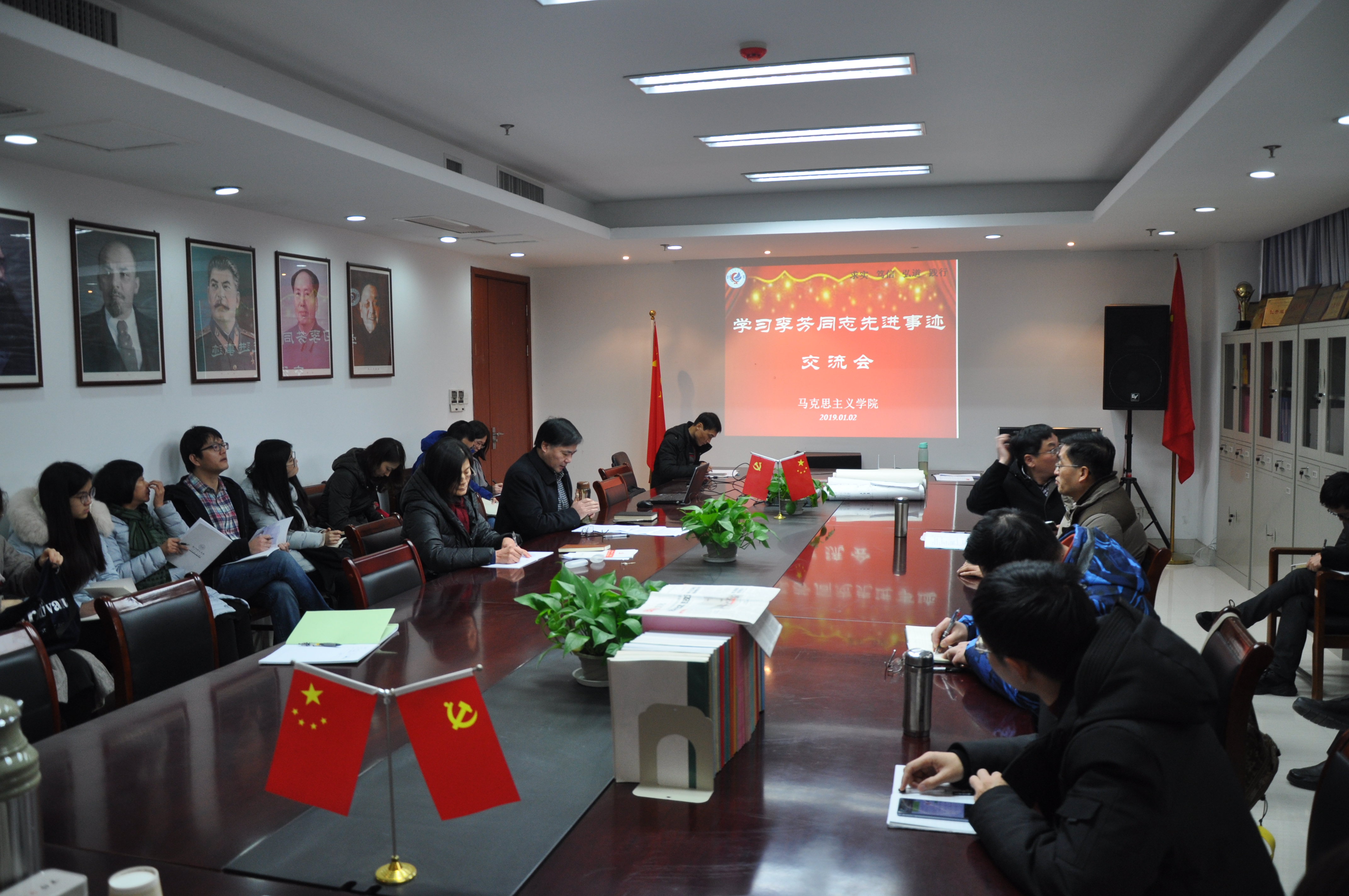 2019年1月2日下午,探花视频 组织师生齐聚恕园1-306,开展学习李芳同志先进事迹交流会,本次专题学习交流会由党总支书记、院长余龙进主持。