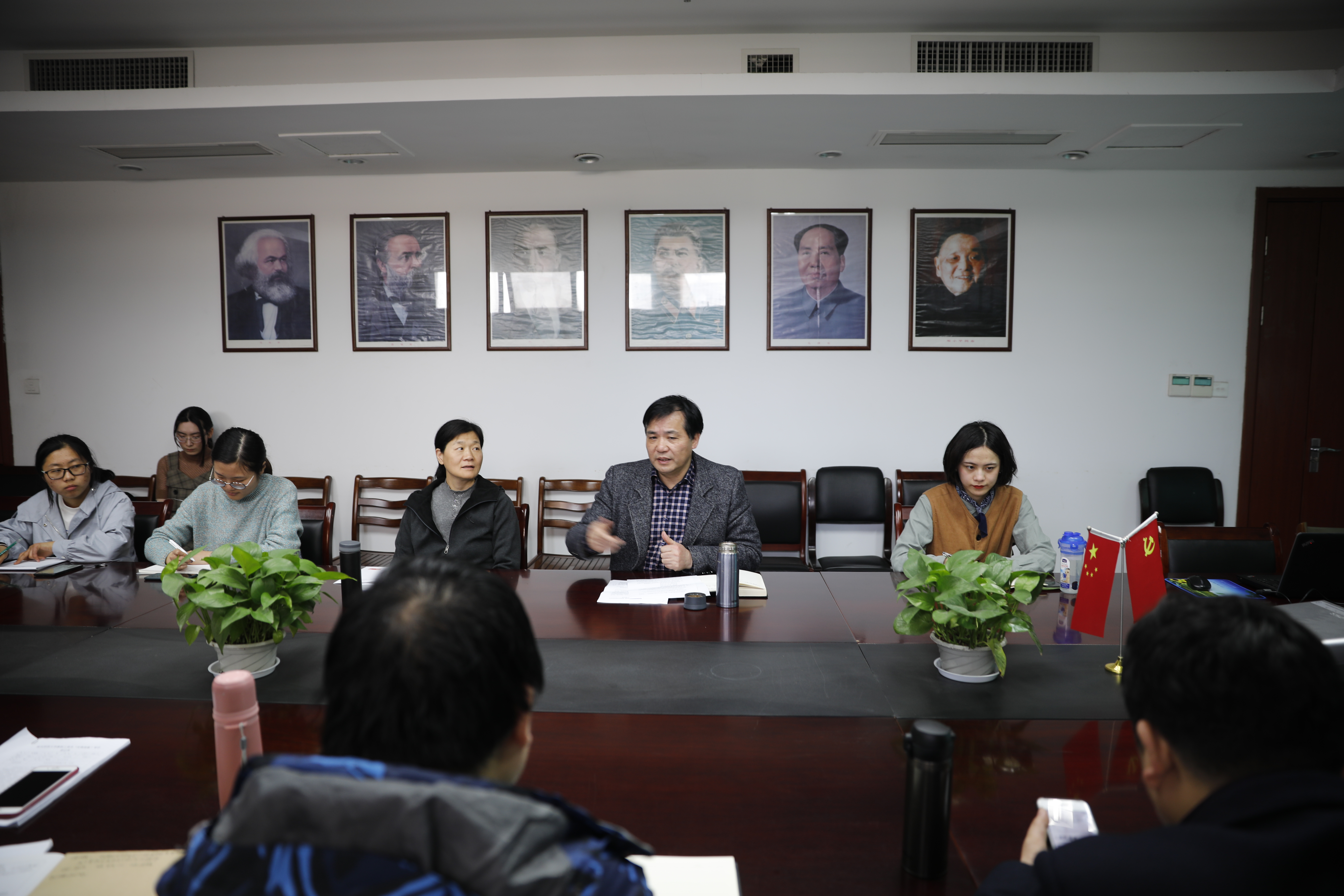 3月20日下午,探花视频 理论学习中心组召开学习扩大会,认真学习贯彻习近平总书记在学校思想政治理论课教师座谈会上的重要讲话精神。学院党总支书记、院长余龙进主持会议并讲话,何丽君副院长及20位师生参加了学习会。