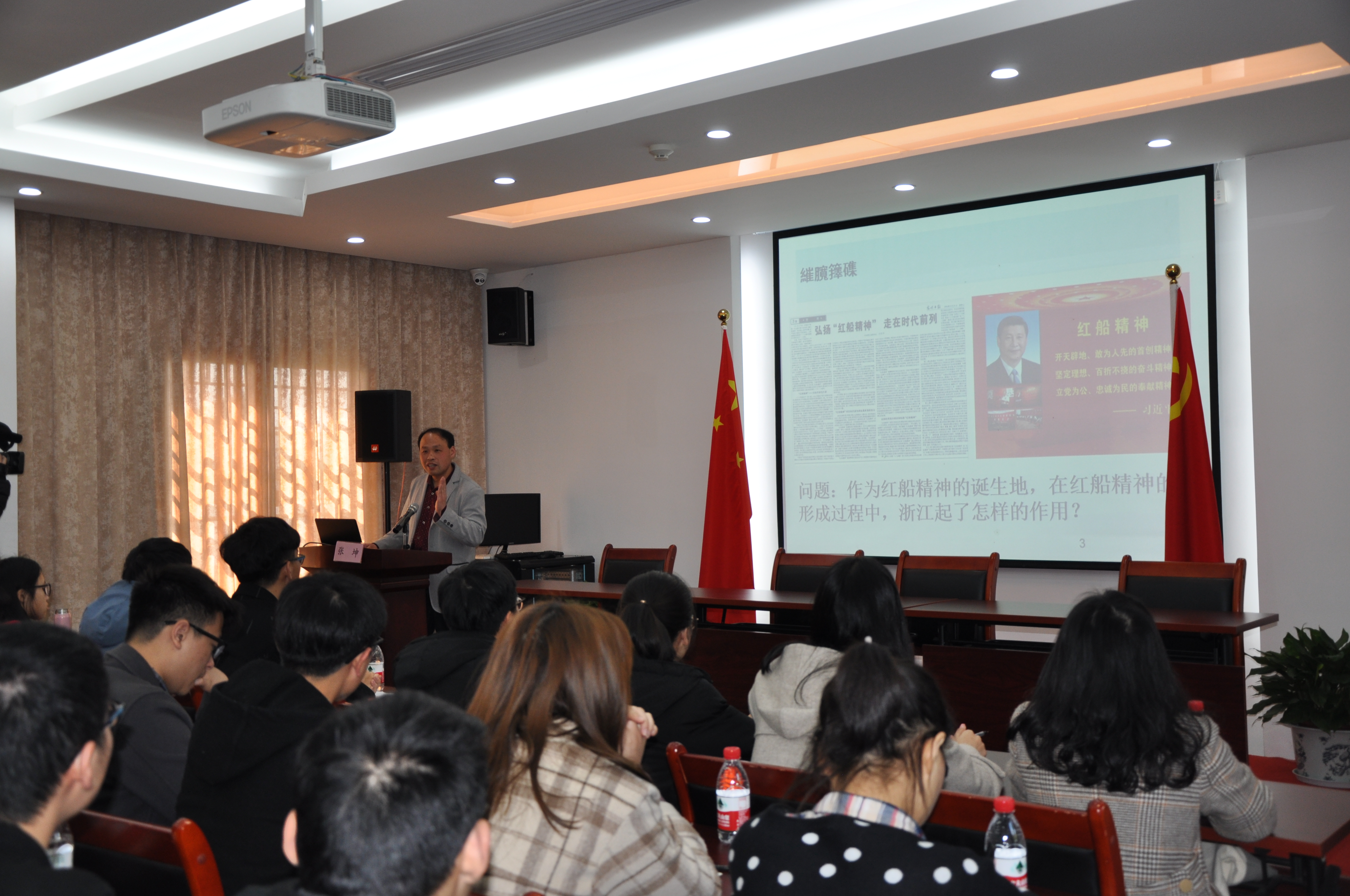 根据因地制宜、因时制宜、因材施教的原则,探花视频 教师张坤博士结合习近平总书记重要讲话精神,专门在党史馆开讲了第一堂思想政治理论课——《红船精神与建党时期的浙籍共产党员》。
