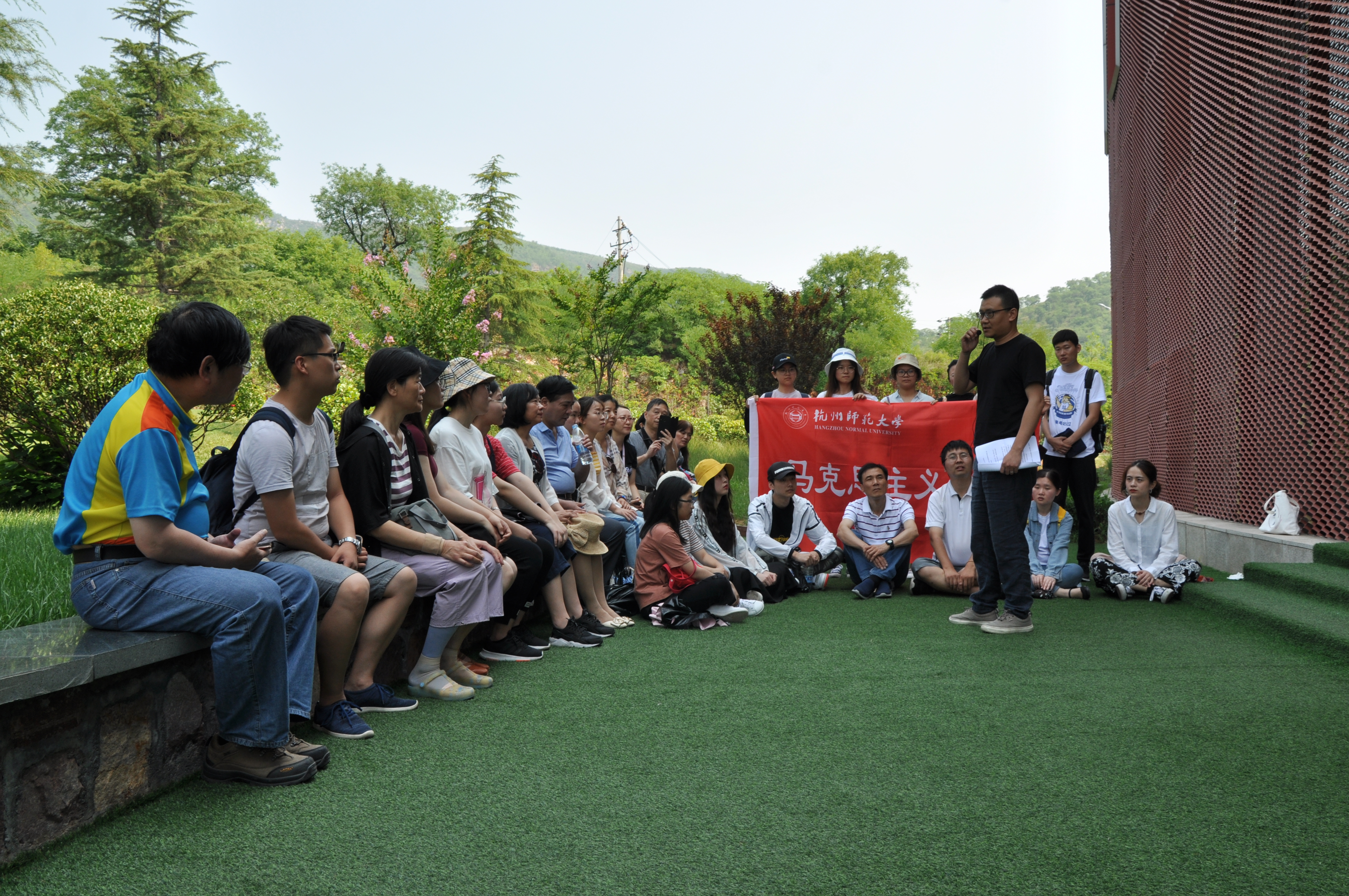 师生们首先来到了七届二中全会的召开地——西柏坡。“五大书记”铜像及“新中国从这里走来”几个大字,昭示着西柏坡在中国革命史上的重要地位,毛泽东在这里指挥了震惊中外的“三大战役”,具有重要转折意义的七届二中全会在这里召开,中共中央正是从这里出发,踏上了进京“赶考”的道路。师生们首先参观了西柏坡七届二中全会纪念馆和西柏坡旧址大院,仔细了解了西柏坡的人文历史,学习了毛主席在此指挥“三大战役”的 诸多细节以及七届二中全会的具体过程,既感受到了毛主席指挥战役时“决胜于千里之外”的豪迈气魄,又体会到了他提出“两个务必”时的清醒冷静。