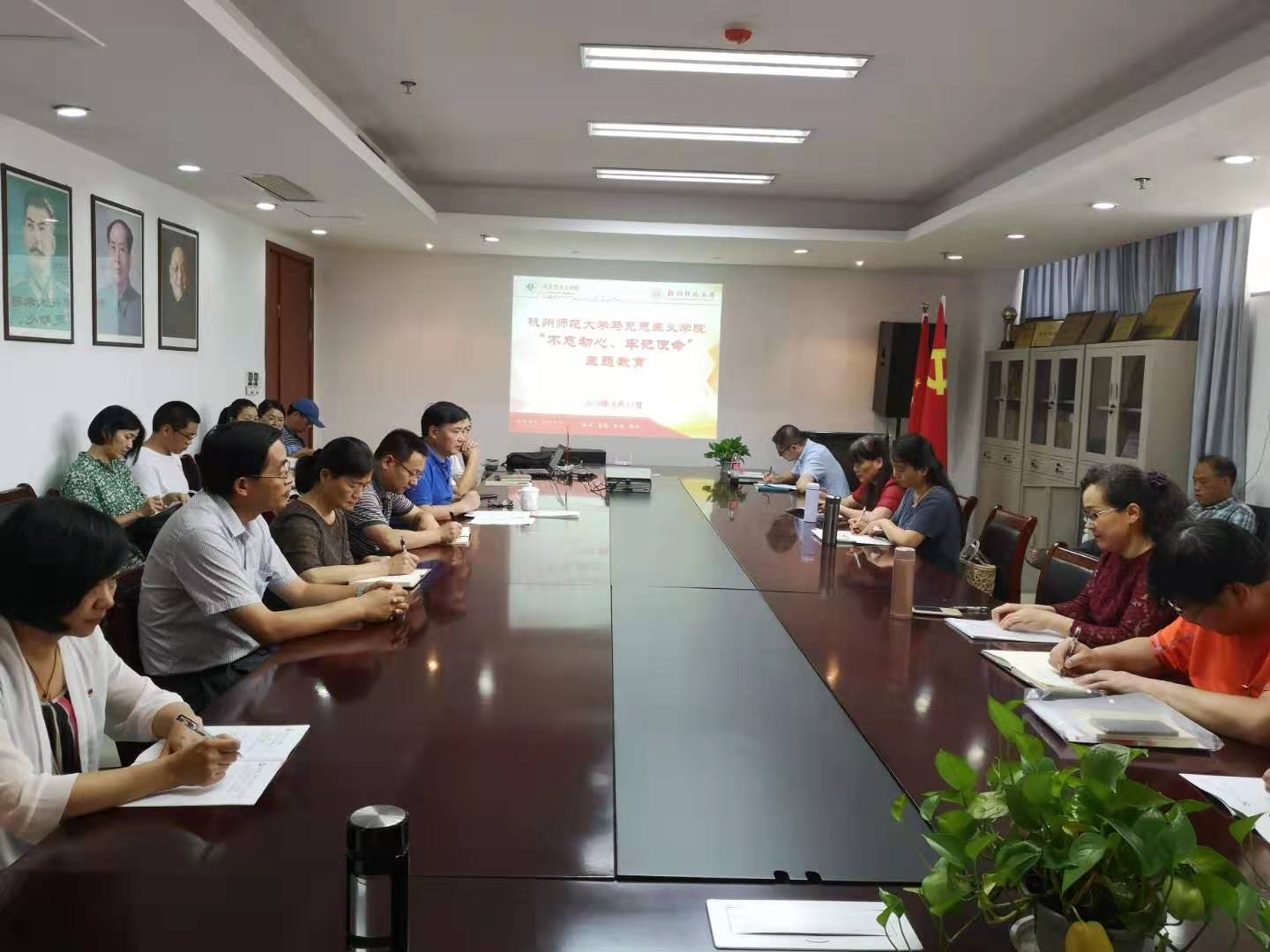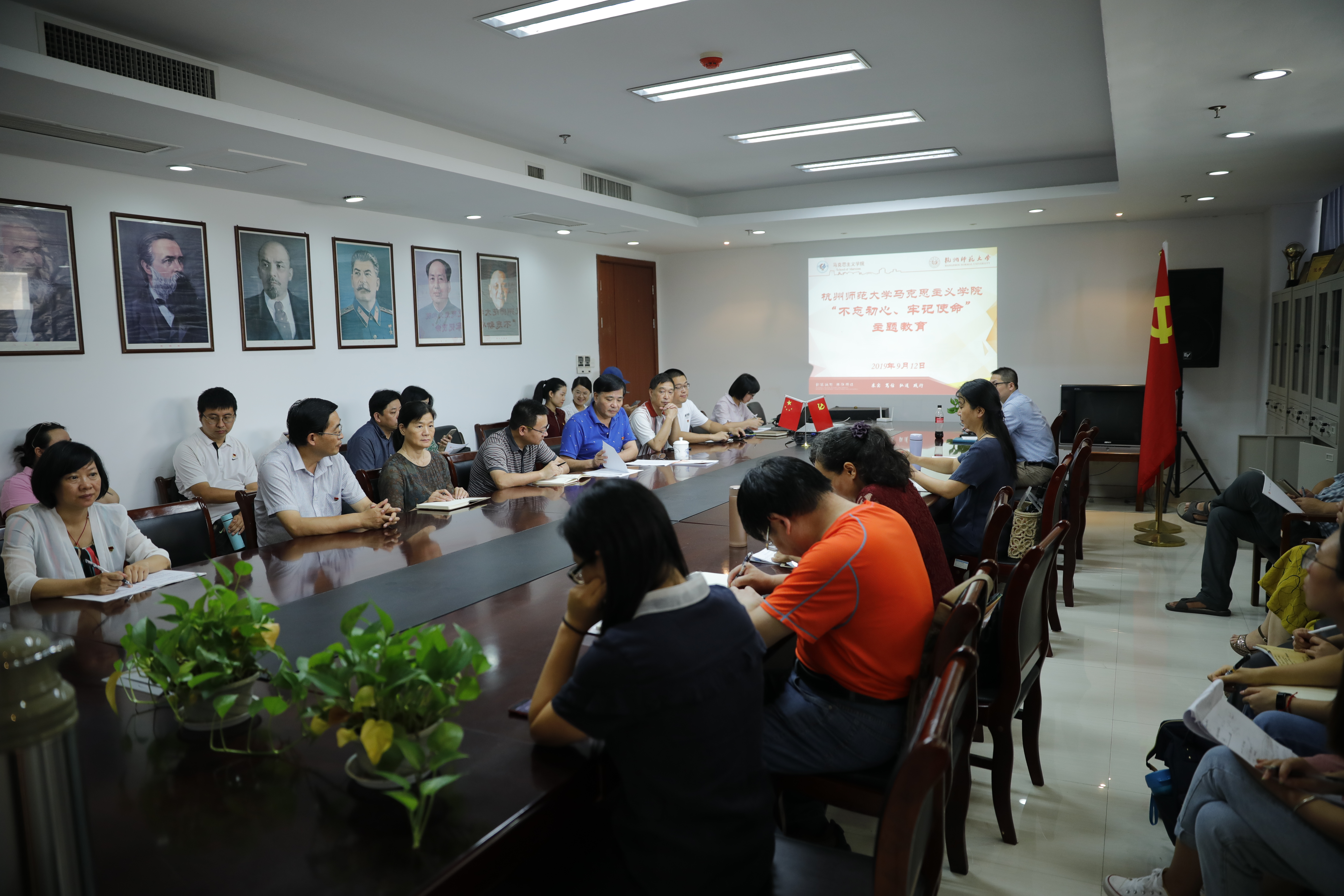 为深入贯彻落实党中央、浙江省委、杭州市委和学校党委有关会议和文件精神,9月12日中午,探花视频 在恕园1号楼306会议室召开“不忘初心 、牢记使命”主题教育工作会议。本次会议由探花视频 党总支书记余龙进主持,学校“不忘初心、牢记使命”主题教育督导组成员杨学勇莅临指导,学院全体教师生党员参加会议。