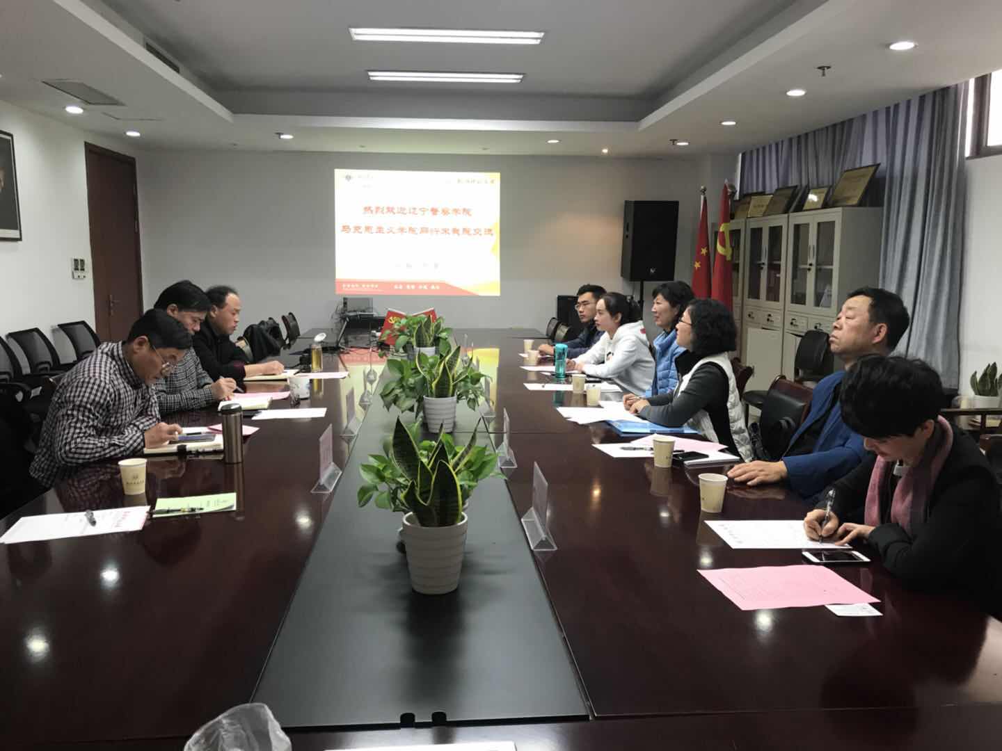 12月5日上午,辽宁警察学院探花视频 《概论》教研室主任田娟一行6人来探花视频 交流,我校探花视频 余龙进院长、《原理》教研室主任傅德田、《纲要》教研室主任张坤和教务科长梅慧英参加了座谈会。