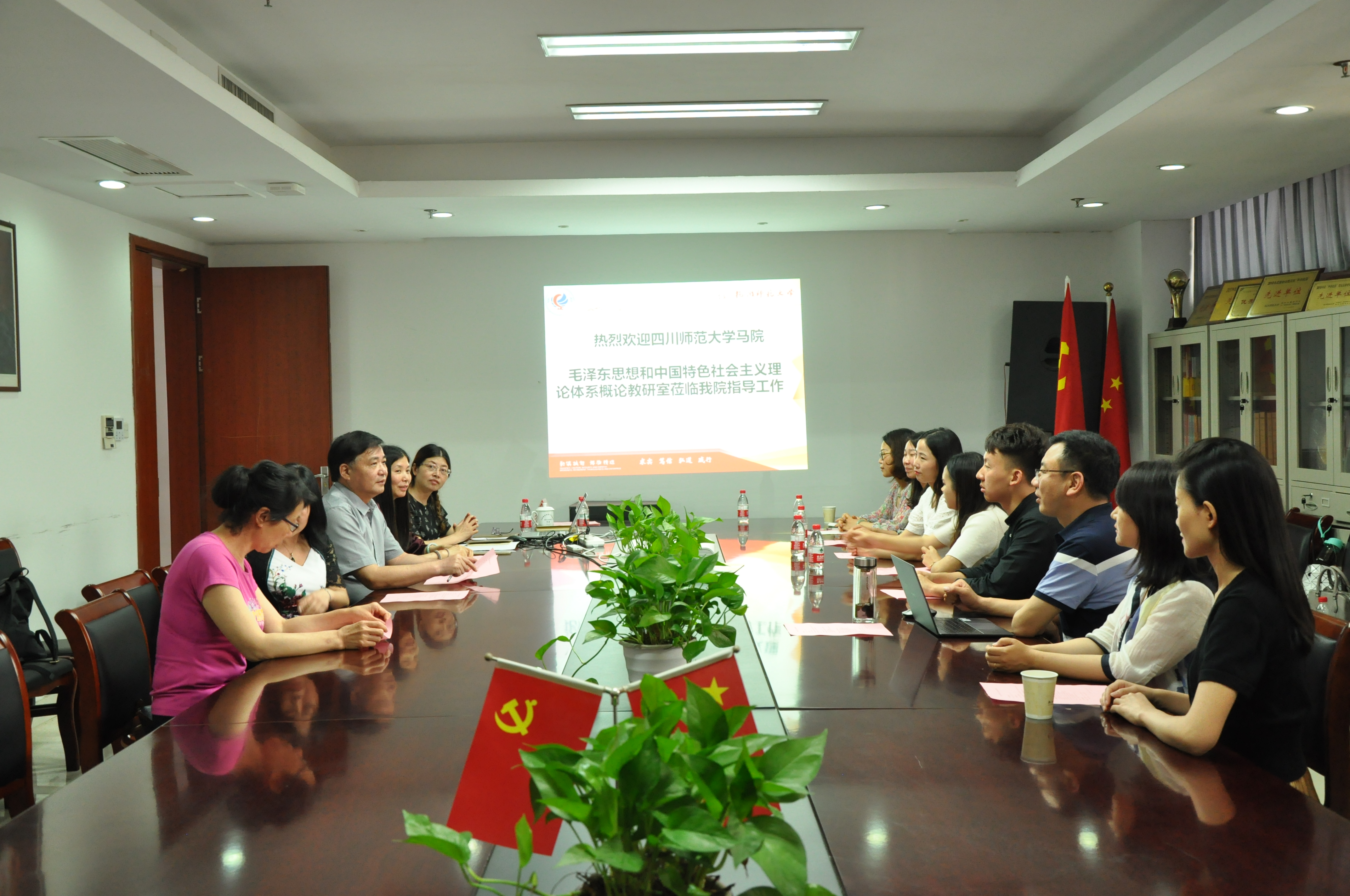 5月31日下午,四川师范大学探花视频 党委书记王泽兵教授一行23人来探花视频 交流。学院党总支书记、院长余龙进、副院长何丽君、院长助理奚颖瑞、概论教研室主任陈彩娟、原理教研室主任傅德田、教工第一支部书记应维华等参加了交流座谈会。会议由余龙进主持。