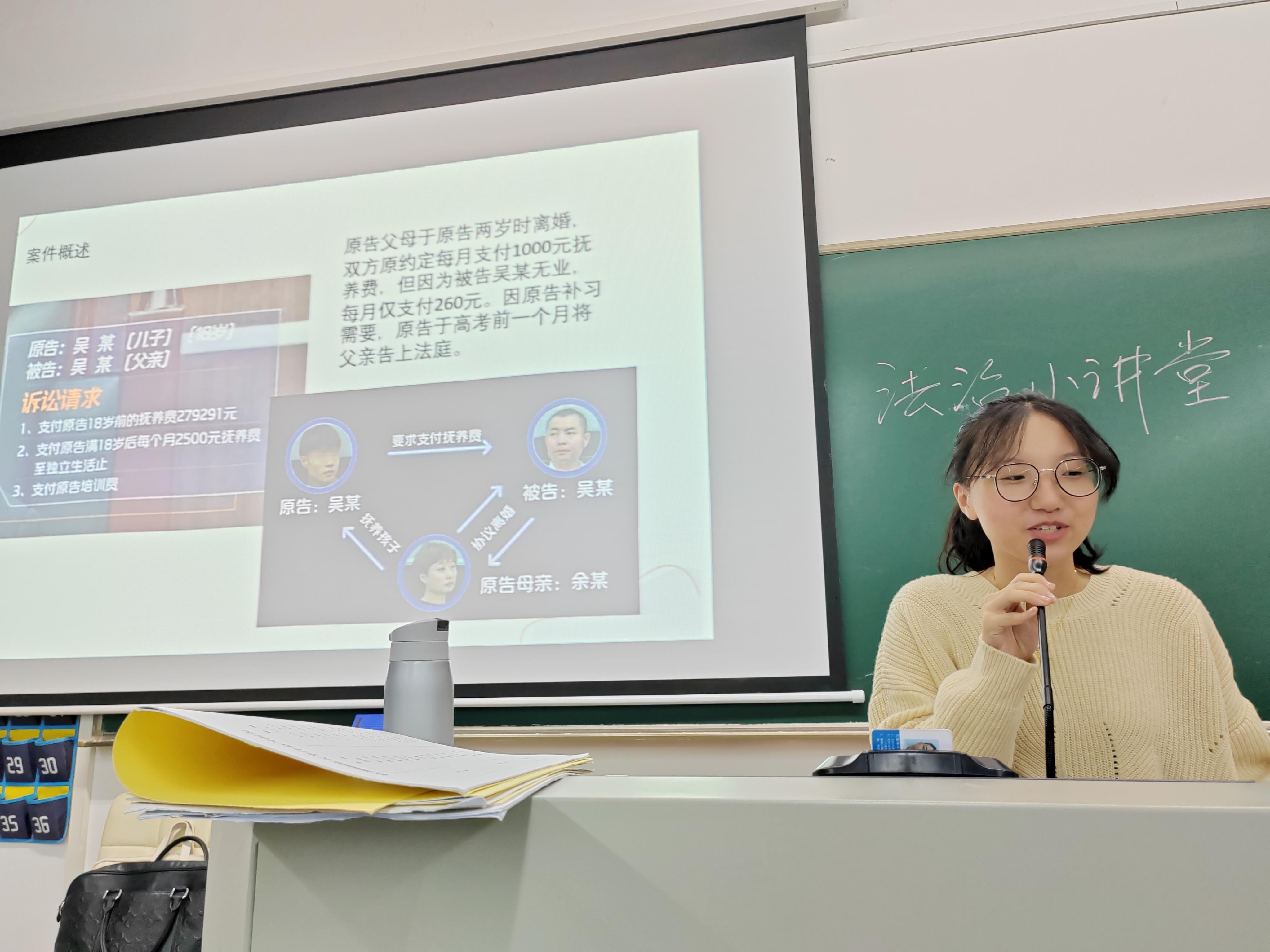 在法学氛围的熏陶下,同学们的法治素养慢慢提升,对案件的讲解也逐渐得心应手。新一期法治小讲堂——“以案说法”的内容相较于上一期更加丰富,更加贴近于我们的学习生活。从婚姻法到合同法,同学们讲解的案件涉及到了民法典的各个方面,大大加深了同学们对民法的理解。