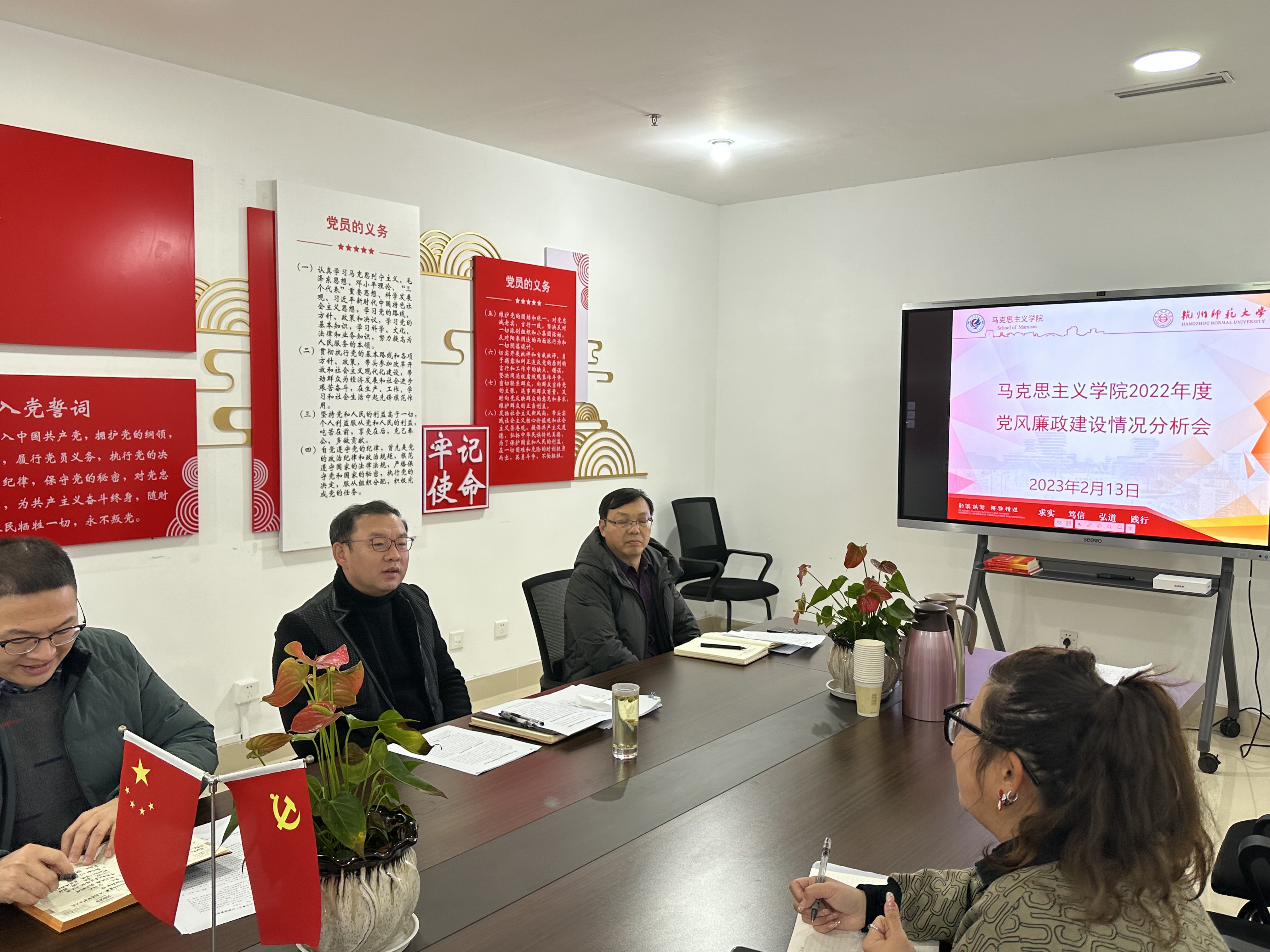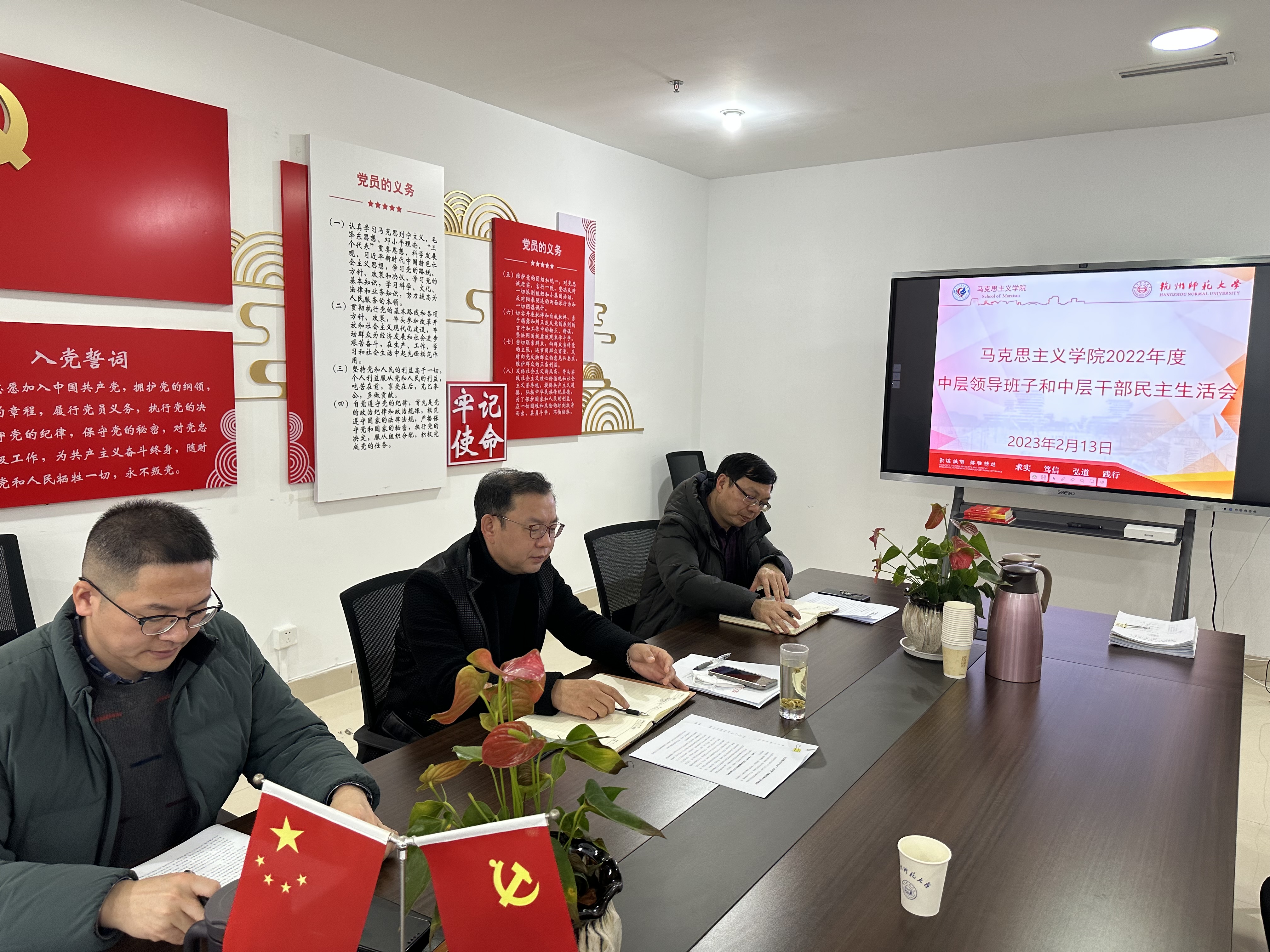 根据校党委组织部《关于召开2022年度中层领导班子和中层干部民主生活会的通知》及校纪委《关于召开2022年度党风廉政建设情况分析会的通知》要求,2023年2月13日上午,探花视频 在恕园26号楼303会议室召开2022年度中层领导班子和中层干部民主生活会暨党风廉政建设分析会。学院领导班子成员参加会议,校纪委刘延轶老师列席会议,会议由马院党委书记李洪波主持。