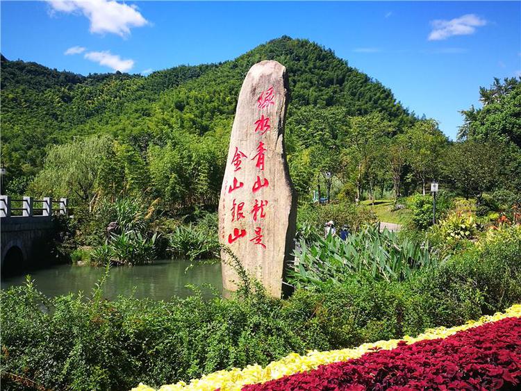 顺着干净整洁的沿村路,大家随着宣讲员来到了“绿水青山就是金山银山”的大石碑前,通过讲解员的解说,我们得知石碑高出水面8.15米,代表2005年8月15日这个特殊的日子;石碑重8.8吨,象征着 “八八战略”在浙江落地生根。大家了解到,十多年的发展,余村人以实际行动让“灰山”变绿,让“污水”变清,从“靠山吃山”,到“养山富山”,通过大力发展生态旅游、生态农业经济,践行了“金山银山带不来绿水青山,而绿水青山却能带来金山银山”的可持续发展理念。