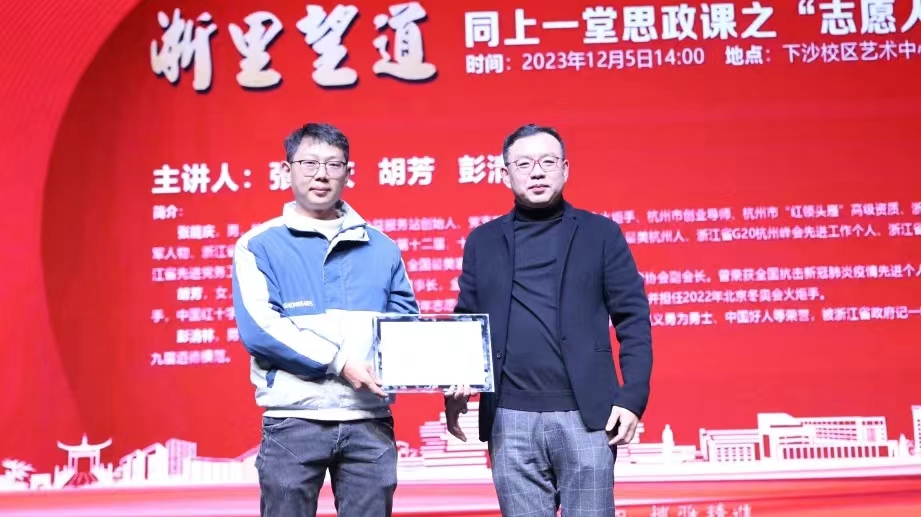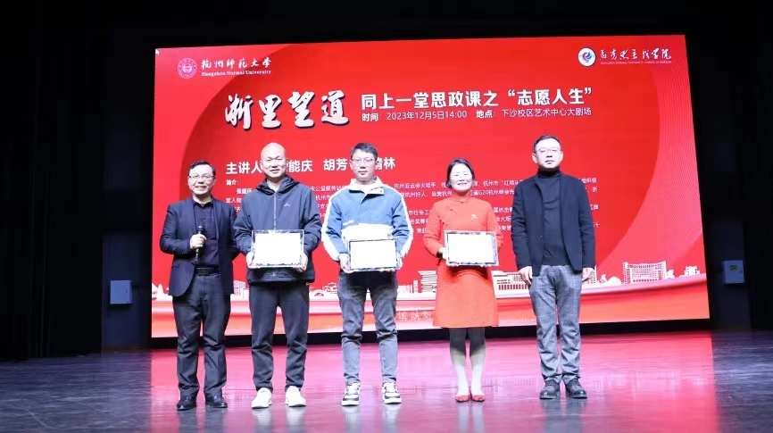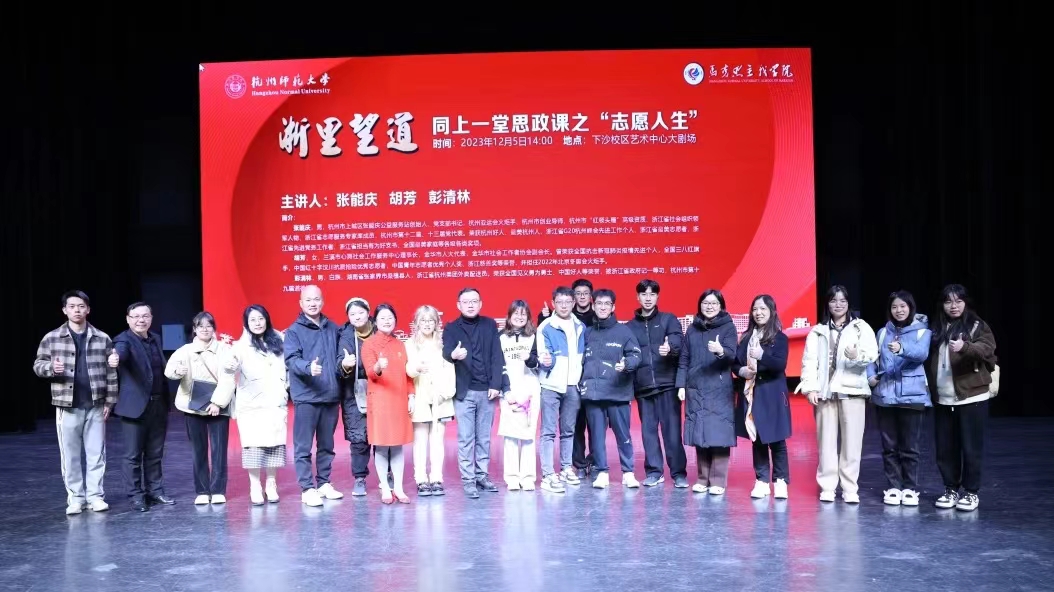 12月5日下午,恰逢国际志愿者日,探花视频 “浙里望道”:同上一堂思政课系列活动第一期“志愿人生”专场在探花视频 下沙校区拉开帷幕。1200名师生现场同上一堂思政课。本次活动紧扣“志愿人生”主题,专门邀请了三位致力于公益服务的社会活动名人名家彭清林、张能庆和胡芳,请他们分享自己的人生故事,让大学生们同步聚合、同频共振、同向发力,共同投身于志愿服务中,在社会大课堂中历练成长,为国家排忧解难尽一份力。