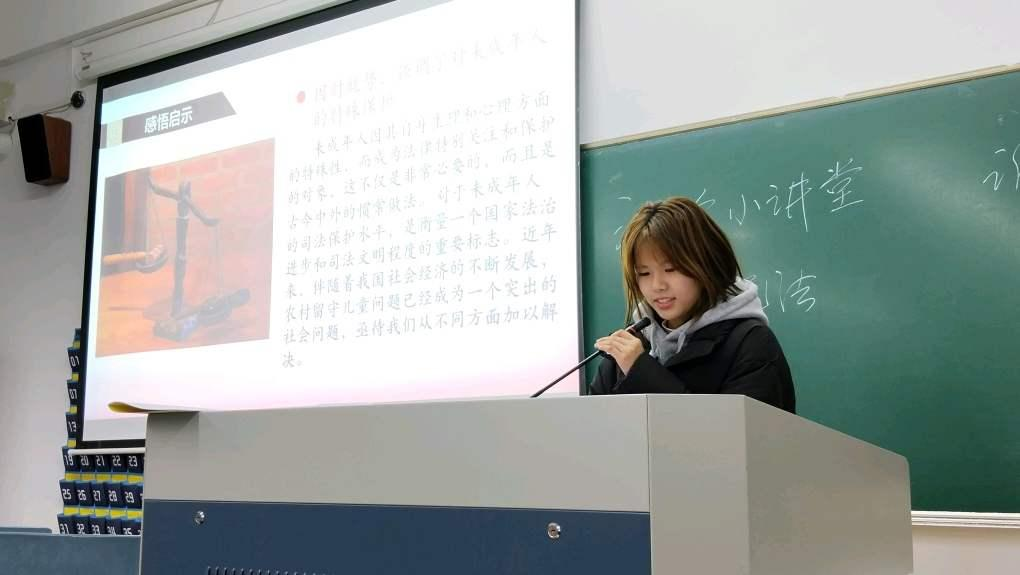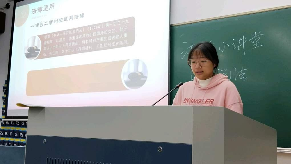 第四组:思政234班的王悦瑶、郑络丹、任媛媛同学分享了一起关于未成年少女被奸杀案——“百香果女童案”。通过此案为同学们讲解了再审撤销二审审判结果的正确性,深度解析了法理与人情该如何平衡。