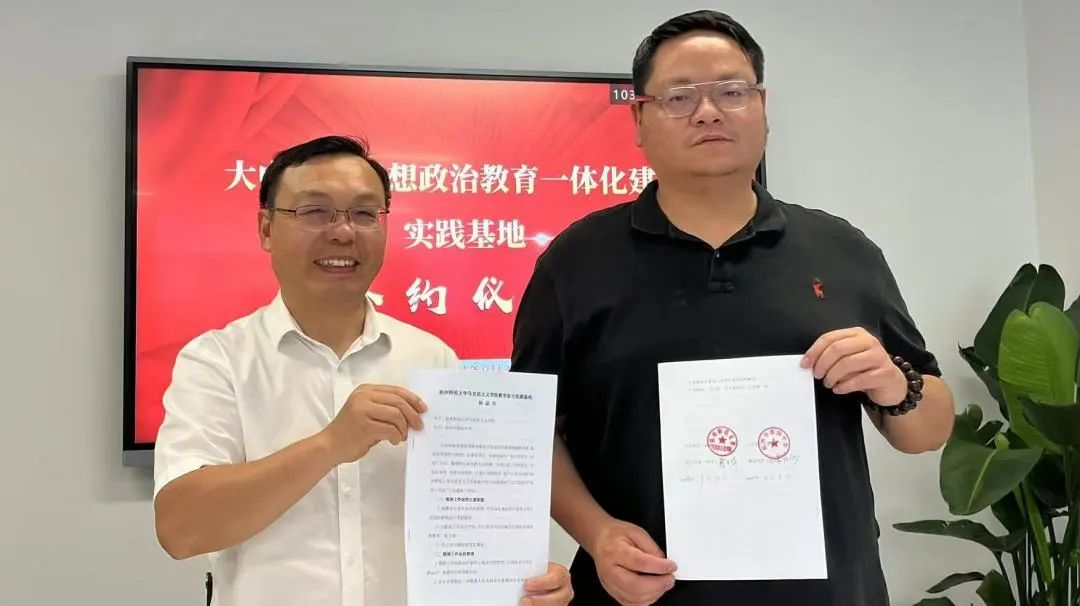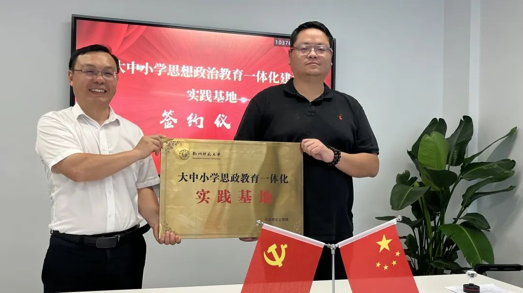 探花视频 副院长龚上华、杭州市澎扬中学校长吕阳俊代表双方举行了教学实习实践基地建设的合作签约和大中小学思政教育一体化实践基地的授牌仪式。
