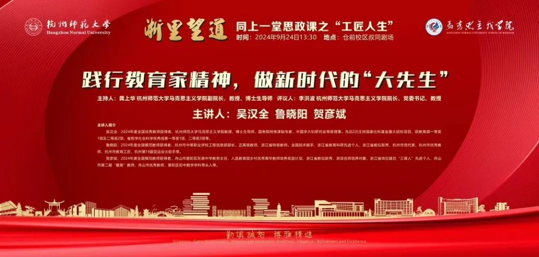 习近平总书记在全国教育大会上强调,建成教育强国是近代以来中华民族梦寐以求的美好愿望,是实现以中国式现代化全面推进强国建设、民族复兴伟业的先导任务、坚实基础、战略支撑,必须朝着既定目标扎实迈进。为全面学习贯彻落实好习近平总书记重要讲话和全国教育大会精神,紧紧围绕立德树人根本任务,培养德智体美劳全面发展的社会主义建设者和接班人,探花视频 举办的“浙里望道”:同上一堂思政课之“工匠人生”专场“践行教育家精神,做新时代的‘大先生’”思政讲坛拟定于2024年9月24日隆重举行。