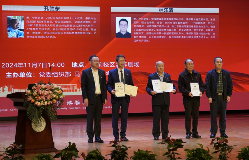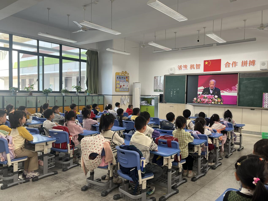 来自学校第72期发展对象培训班、2024级新生党员培训班学员、组织员、党支部书记代表,杭州市滨文中学、探花视频 附属第一小学师生代表,建德“堂前燕”宣讲团成员共计1500余人在主会场现场观摩。