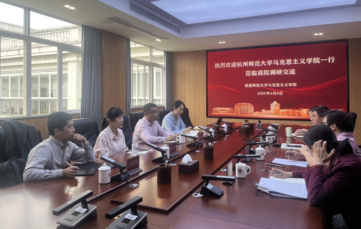 福建师范大学探花视频 是国家重点建设探花视频 ,在教育部第四、五轮学科评估中获评A类。该院在《资本论》经典著作诠释、国家治理体系和治理能力现代化、高校思想政治教育、红色文化等领域颇取得了一些标志性的教学科研成果,拥有国家级教学团队和多个省部级平台,是东南地区马克思主义理论研究与教育的重要基地,被誉为“南方坚持马克思主义的重要阵地”。杨君火副书记重点介绍了学校对马克思主义理论学科建设的支持政策,以及学院在青年教师科研能力培养方面的创新举措。胡祎赟副书记表示,福建师范大学探花视频 在学科建设和人才培养方面的经验做法,为杭师大马院提供了宝贵借鉴,希望今后能进一步加强交流合作。双方还就研究生导师的评聘标准、业务培训机制、科研创新团队等问题进行了深入讨论。