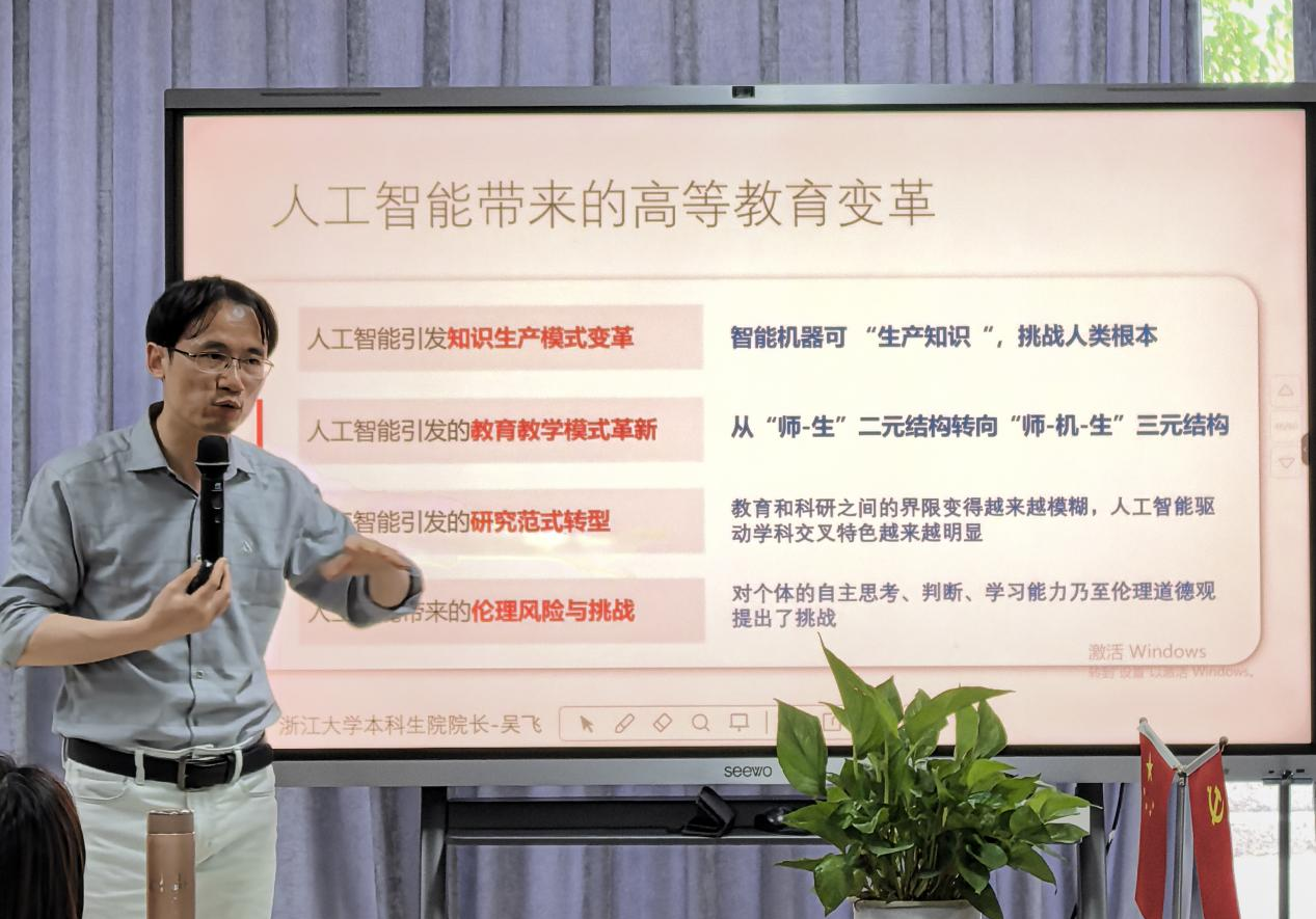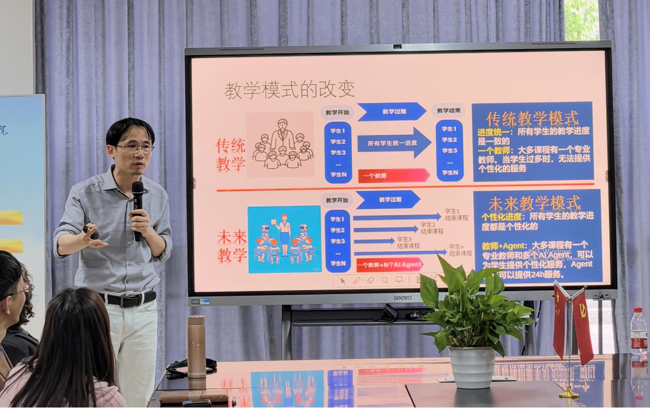接着,徐舒畅副教授强调,大语言模型在给教育带来机遇的同时也对教育提出了相应的挑战。通过分享自身教学经历,徐舒畅副教授重点探讨了AI技术对教育的影响。在机遇方面,AI技术促进了教学模式的革新、科研方法的转型和价值观教育的创新等。同时,AI的发展也给教育带来了挑战,需要广大教师不断提升自身对AI教学的应用能力,以更好迎接AI技术所带来的挑战。