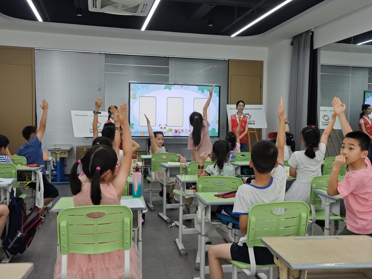 课程注重将文化传承与创新结合,设计戏曲文化启蒙、英语趣味学习等环节,通过动画、竞答和绘画等形式,将知识融入互动体验。在创意实践环节中,团队成员鼓励学生提高动手能力、发扬协作精神,让他们在水果拼盘设计、水晶灯制作、轻粘土制甲骨文等活动中发挥想象力,提高学生的美学素养。