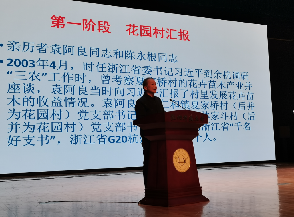 原余杭区仁和镇夏家桥村(后合并为花园村)党支部书记袁阿良以苗木产业发展为切入点,讲述了村庄的致富历程。从上世纪60年代初的几亩土地起家,到2003年习近平总书记调研时已形成3000亩种植规模,带动2400亩周边土地流转,3000名员工实现增收。依托改革开放政策红利,苗木产业经济效益远超传统种植,村民收入跃升至如今的富足水平。面对发展中的技术、资质等难题,村集体通过政策争取、技术革新逐一破解,用实际行动回应总书记“做好产业、带动就业”的嘱托,印证了“党的好政策是乡村发展的根本保障”。